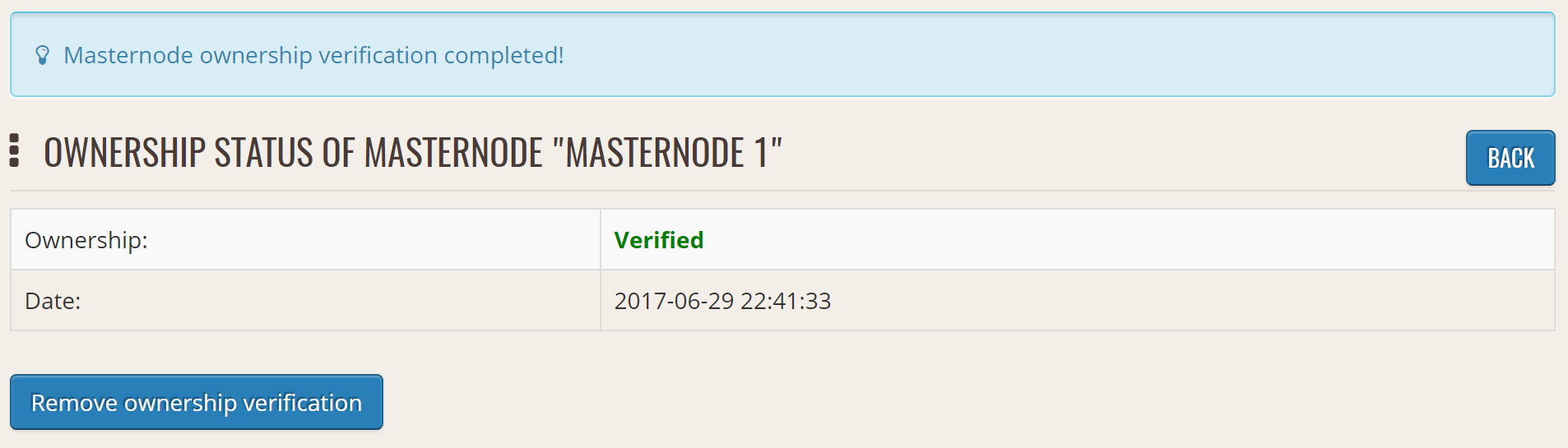 Masternode ownership has been successfully verified#