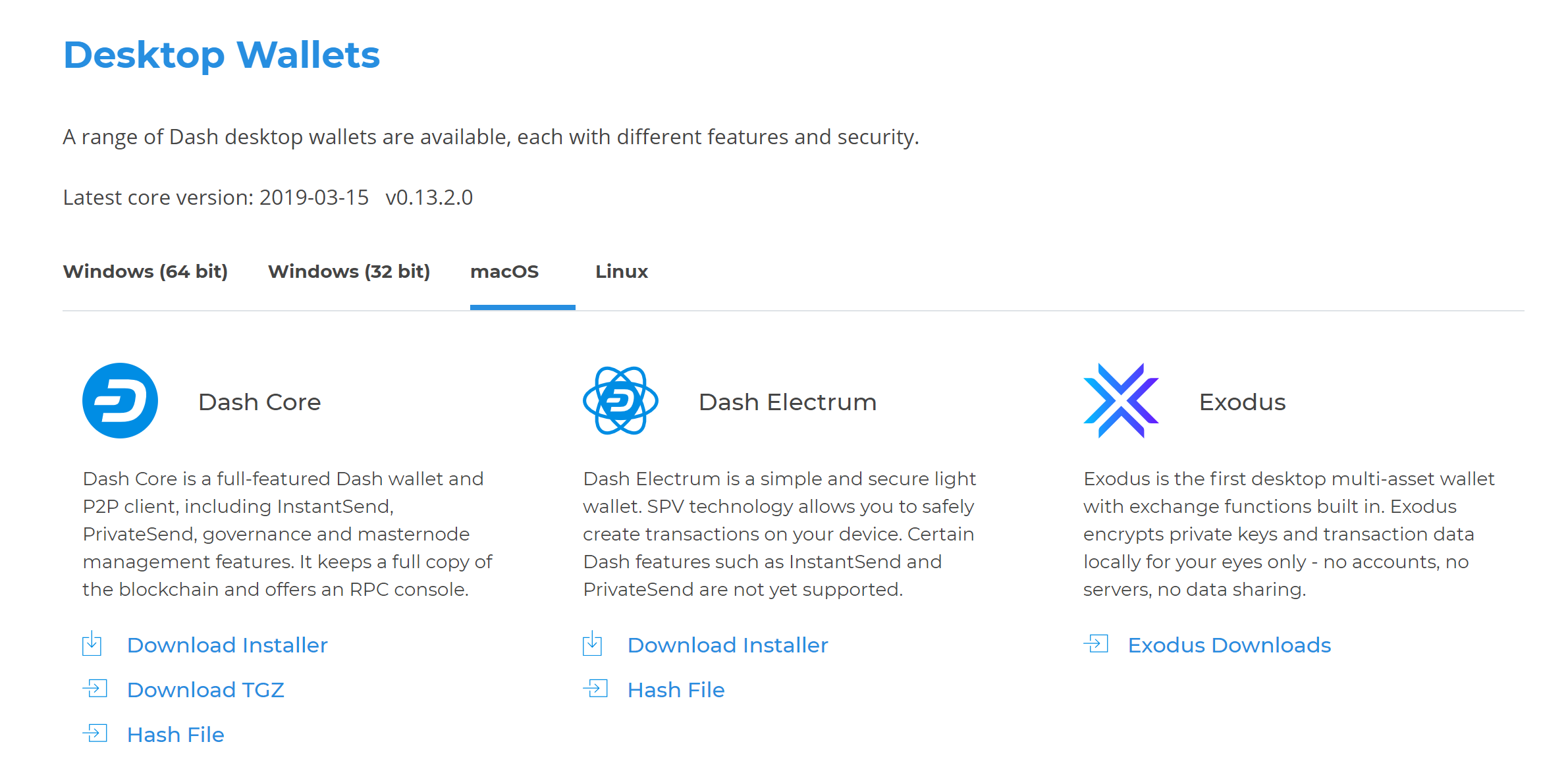 This guide describes how to download, install and encrypt the Dash Core wallet for macOS. The guide is written for macOS Sierra, but the steps should be similar for other versions.