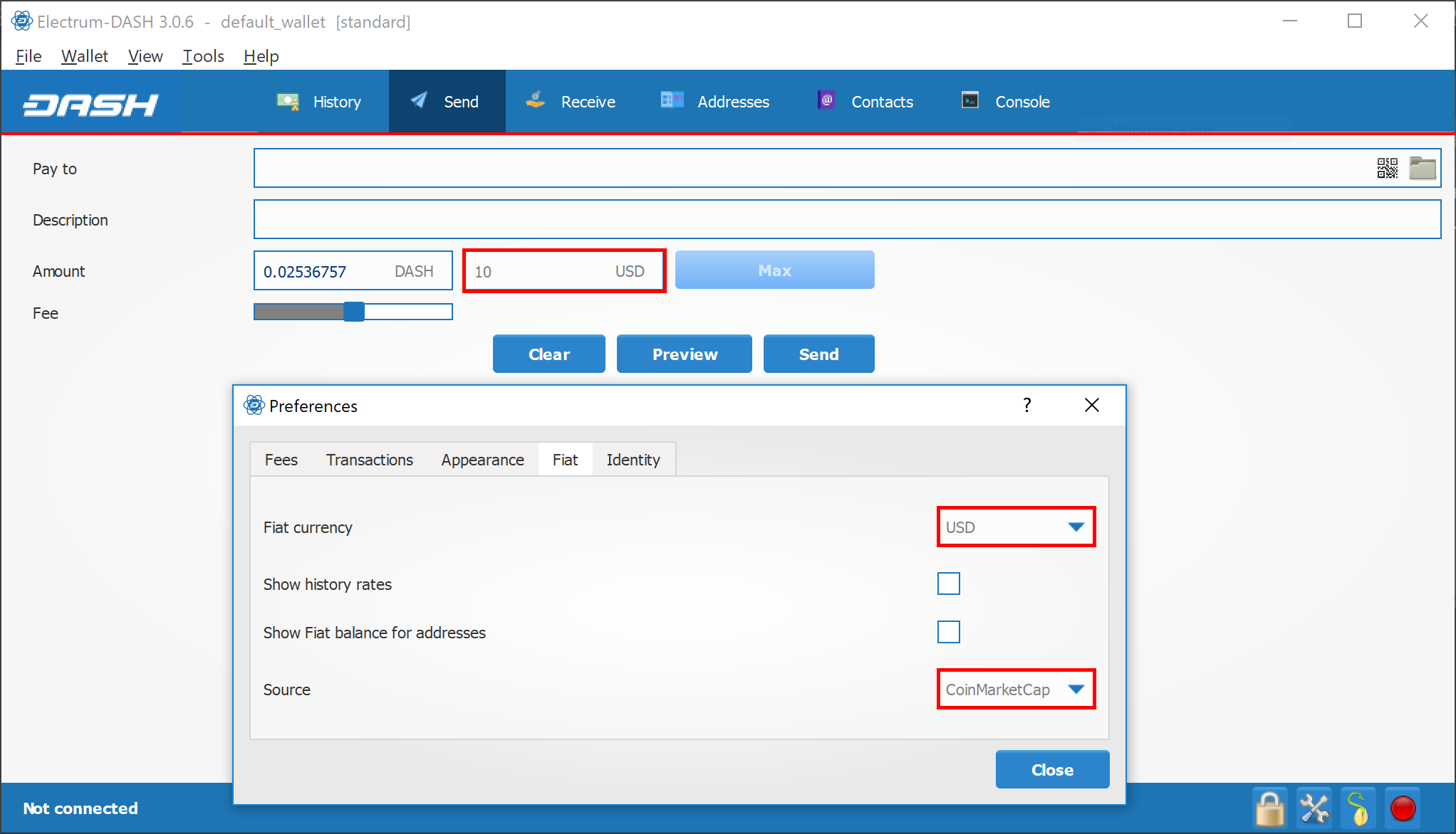 Is there a way to enter amounts in USD in Dash Electrum?#