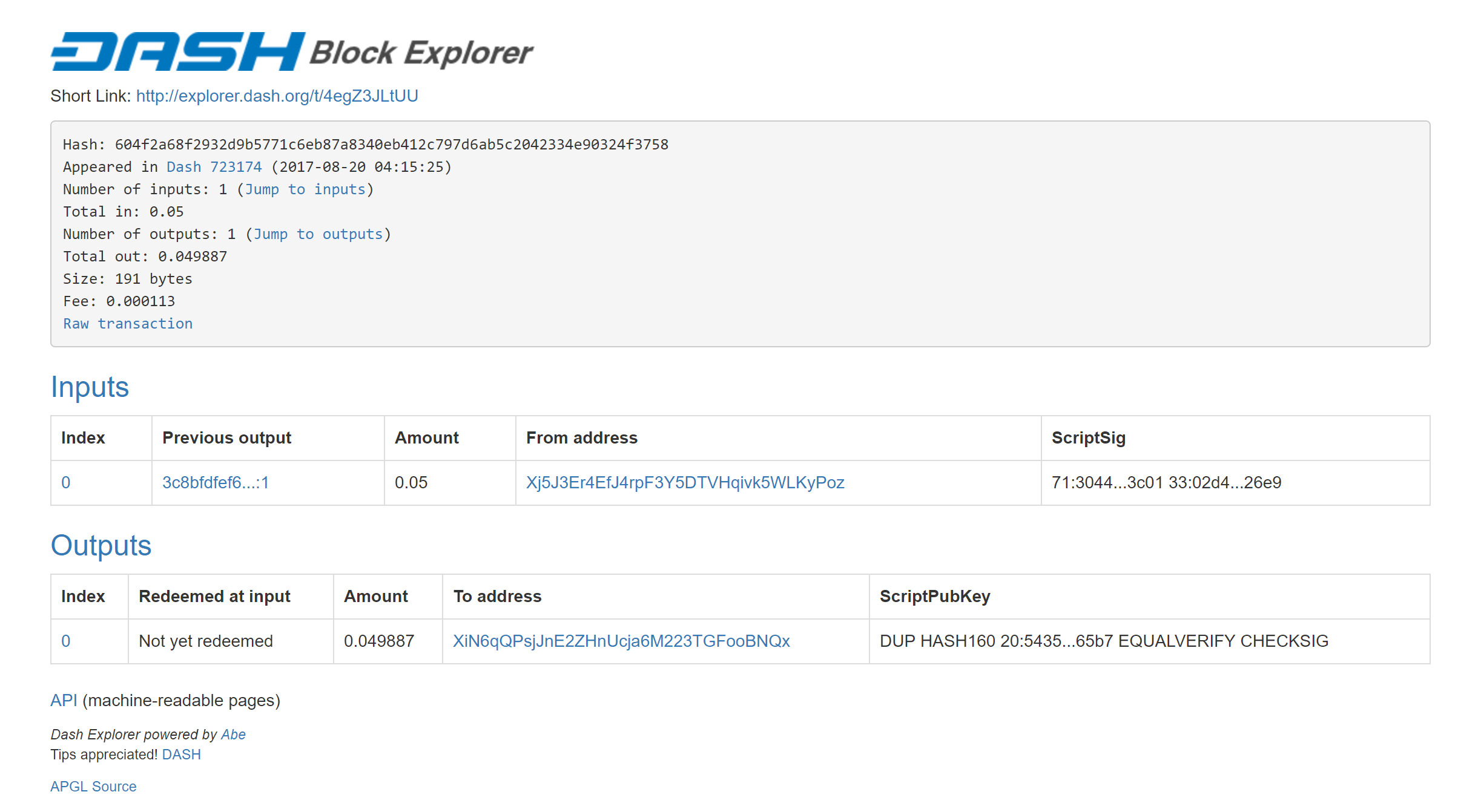 You can send Dash to a paper wallet address in the same way as to any other Dash address. See the documentation for your wallet if you do not know how to do this. For this example, 0.05 Dash (minus transaction fee) has been sent to the paper wallet address. Anyone with knowledge of the public address is able to see the balance of the wallet using a block explorer, but only someone with knowledge of the private key can access the funds. You can make as many deposits and send as many coins to the same address as you’d like. Just make sure you test your wallet with small amounts first to learn how it works.